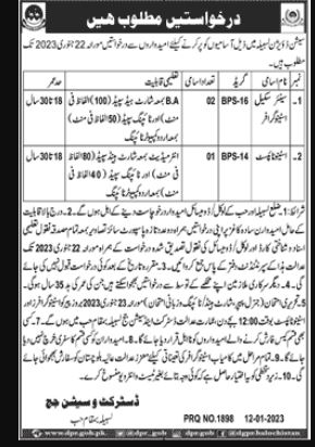 According to the advertisement dated 13 January 2023 in Daily Jang, District and Sessions Court Lasbela, Hub and Lasbela Balochistan Pakistan has announced vacancies including Stenotypist and Stenographer. Intermediate and BA etc educational qualifications will be preferred.